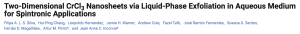 Chromium trihalides, like CrCl3, are part of an emerging class of van der Waals materials that have been showing promise for their magnetic properties. However, CrCl3 has been produced only by mechanical tape exfoliation, a low yield method, and by liquid exfoliation in organic solvents, with a negative impact on the environment and human health. Here, CrCl3 was produced for the first time by liquid-phase exfoliation (LPE) in aqueous medium, in the presence of polyvinylpyrrolidone (PVP10) or sodium dodecyl sulfate (SDS), followed by ultrasonication. It was also the first time that CrCl3 was obtained with nanometric size (<100 nm), and its photothermal, magnetic, and water stability performances were studied. Results showed that CrCl3 + SDS (zeta potential = −19.9 mV) had better water stability than CrCl3 + PVP10 (zeta potential = 8.6 mV). CrCl3 + SDS and CrCl3 + PVP10 were obtained with a mean particle lateral size of 39.4 ± 15.9 and 65.6 ± 47.4 nm and a mean thickness of 4.4 ± 3.9 and 7.1 ± 5.3 nm, respectively. Both materials revealed a similar ability to convert near-infrared light into heat, showing a temperature increase of 4.7 °C (CrCl3 + SDS) and 5.8 °C (CrCl3 + PVP10) after 30 min of irradiation. Results show that the presence of SDS during production leads to a loss of Cl atoms when compared to PVP10, but crystallinity is preserved. Magnetometry measurements show a Néel temperature of 15 K ± 2.0 K for both samples, showing its antiferromagnetism. A Curie–Weiss analysis indicates a ferromagnetic dominant paramagnetic phase due to the positive Curie–Weiss temperatures, with the calculated effective moments as 4.20 μB ± 0.63 μB and 3.95 μB ± 0.49 μB for CrCl3 + PVP10 and CrCl3 + SDS, respectively. These results show that LPE of CrCl3 with PVP10 or SDS produces 2D CrCl3, preserving crystallinity and magnetic properties, and demonstrating potential for spintronic applications.