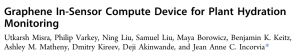 Analog sensing devices that exhibit artificial synaptic behavior offer a promising path toward scalable and energy-efficient environmental sensing. In this work, we report graphene-based, leaf-gated in-sensor compute devices for plant hydration monitoring that are capable of both hydration sensing and synapse-like conductance modulation. These devices measure plant water content through trends in channel conductance while simultaneously encoding memory-like states in response to electrical stimulation. Conductance changes track hydration-dependent ion mobility in the leaf with higher (lower) updates in hydrated (dehydrated) states. Devices show linear potentiation and depression and short-term memory retention, supporting their suitability for neuromorphic edge applications. When deployed on Monstera leaves, the devices maintain ultralow power operation (23 aJ/μS write energy/conductance update and 0.23 μW read power) and minimal weight (9 mg) and cause no disruption to plant physiology. By integration of computation and sensing into a single biocompatible platform, this approach minimizes data transmission requirements and enables real-time, long-term hydration monitoring.